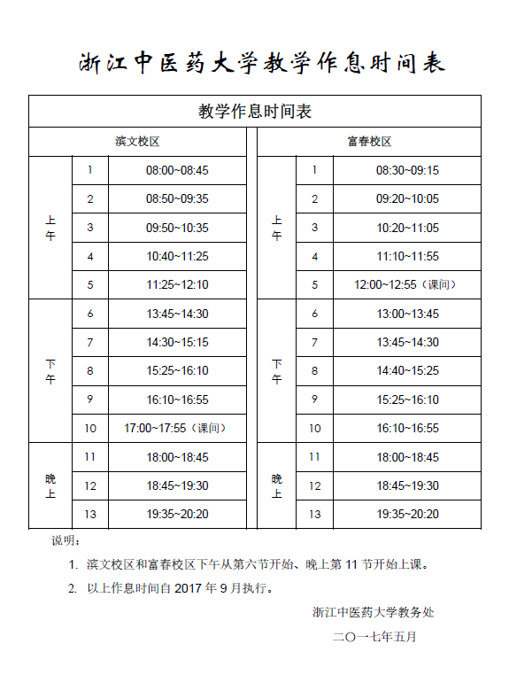接学校通知,从2017年9月18日(周一)起执行新的教学作息时间,具体时间安排请见附件。请全体师生员工认真遵守,以保证正常的教学工作秩序。