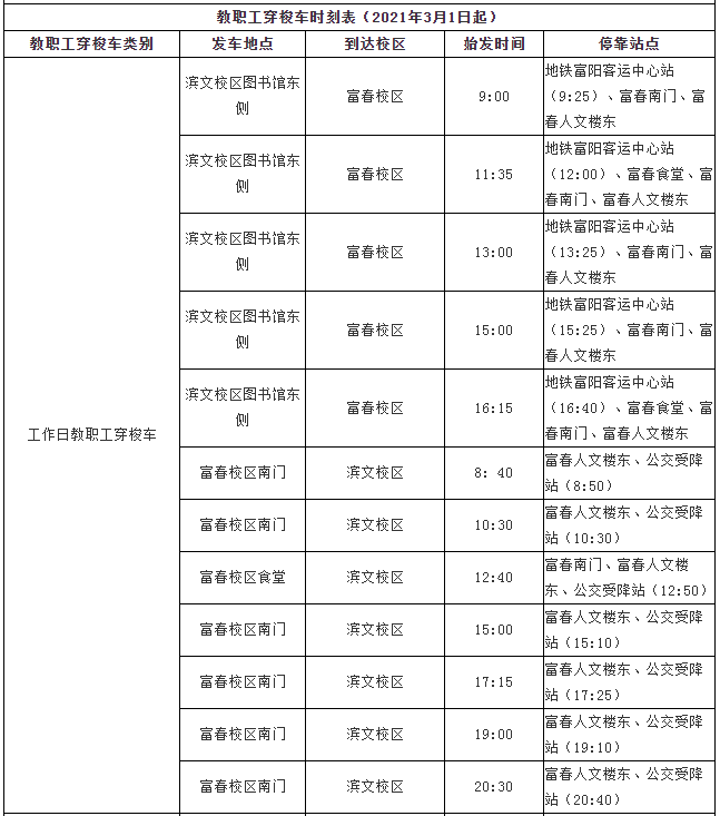 2.1月8日、19日教职工穿梭车按工作日时刻运行;