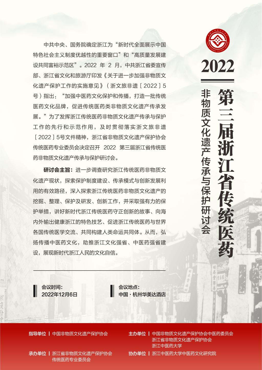 2022第三届浙江省传统医药非物质文化遗产传承与保护研讨会预告