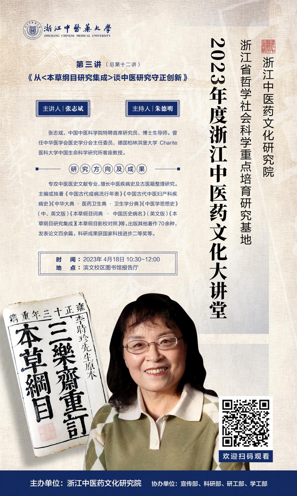浙江中医药文化大讲堂第十二讲——张志斌研究员:从《本草纲目研究集成》谈中医研究守正创新