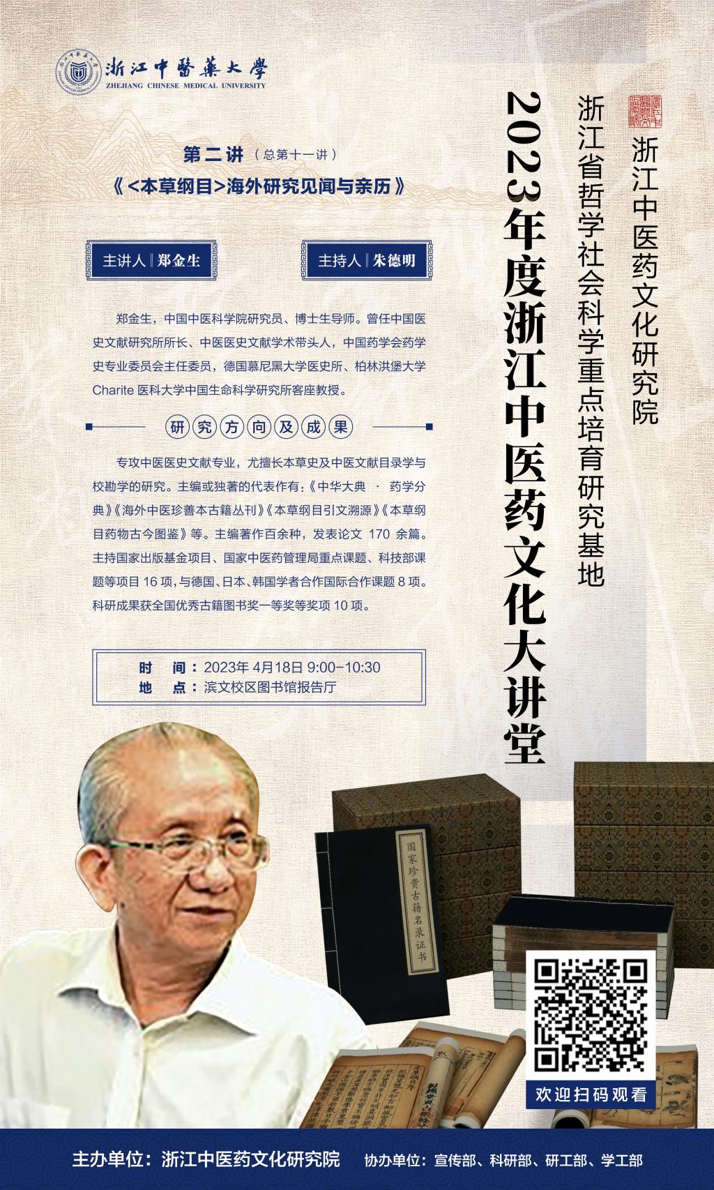 浙江中医药文化大讲堂第十一讲——郑金生研究员:《本草纲目》海外研究见闻与亲历
