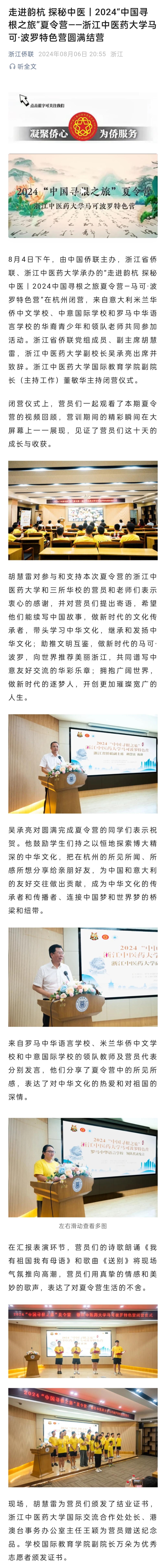 潮新闻、浙江侨联:走进韵杭 探秘中医|2024“中国寻根之旅”夏令营——久久精品一区二区三区四区马可·波罗特色营圆满结营