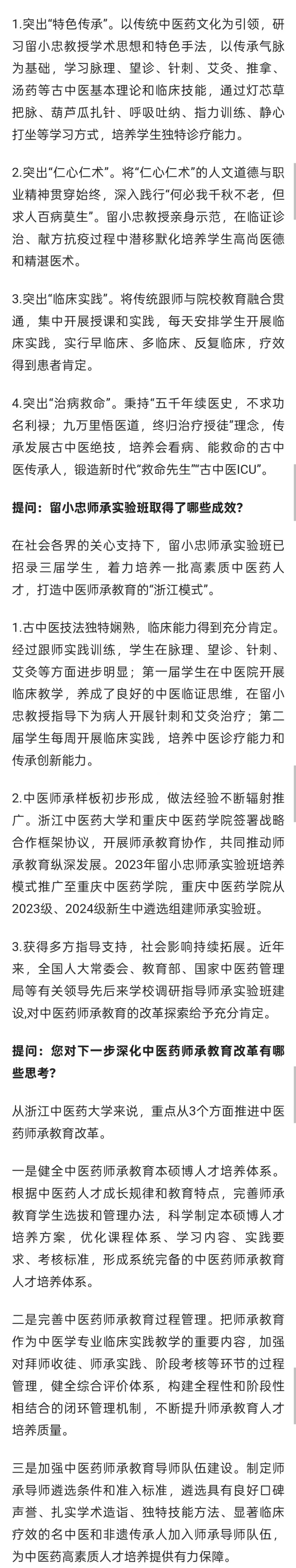 在社会各界的关心支持下,留小忠师承实验班已招录三届学生,着力培养一批高素质中医药人才,打造中医师承教育的“浙江模式”。