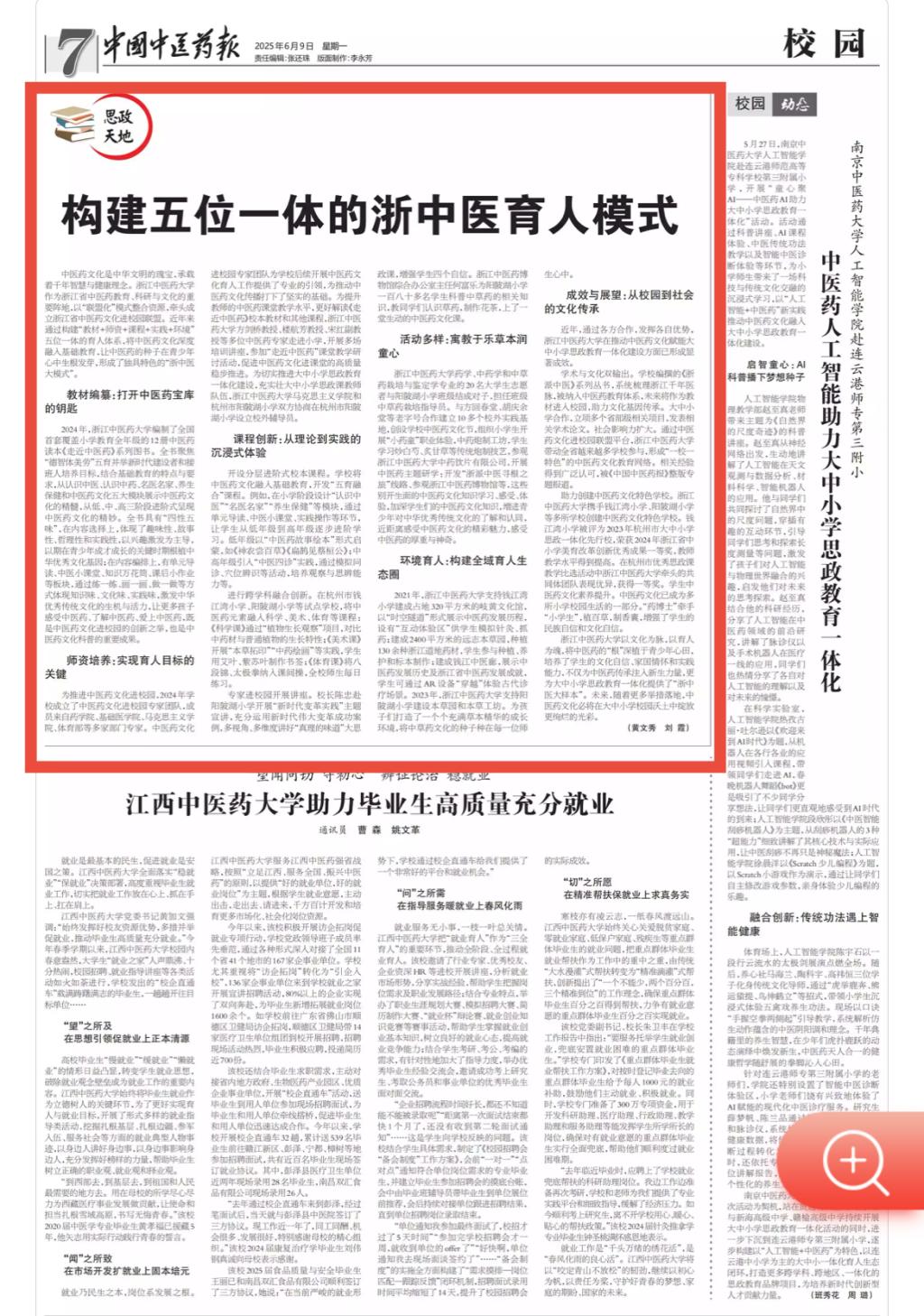 学术与文化双输出。学校编撰的《浙派中医》系列丛书,系统梳理浙江千年医脉,被纳入中医药教育体系,未来将作为教材进入校园,助力文化基因传承。大中小学合作,立项多个省部级相关项目,发表相关学术论文。社会影响力扩大。通过中医药文化进校园联盟平台,久久精品一区二区三区四区带动全省越来越多学校参与,形成“一校一特色”的中医药文化教育网络。相关经验得到广泛认可,被《中国中医药报》整版专题报道。