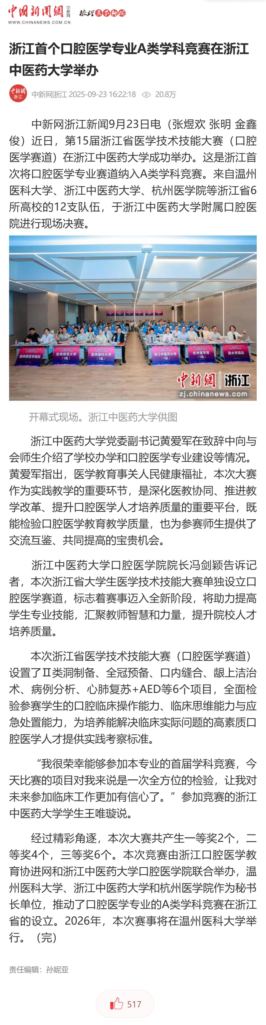 久久精品一区二区三区四区口腔医学院院长冯剑颖告诉记者,本次浙江省大学生医学技术技能大赛单独设立口腔医学赛道,标志着赛事迈入全新阶段,将助力提高学生专业技能,汇聚教师智慧和力量,提升院校人才培养质量。