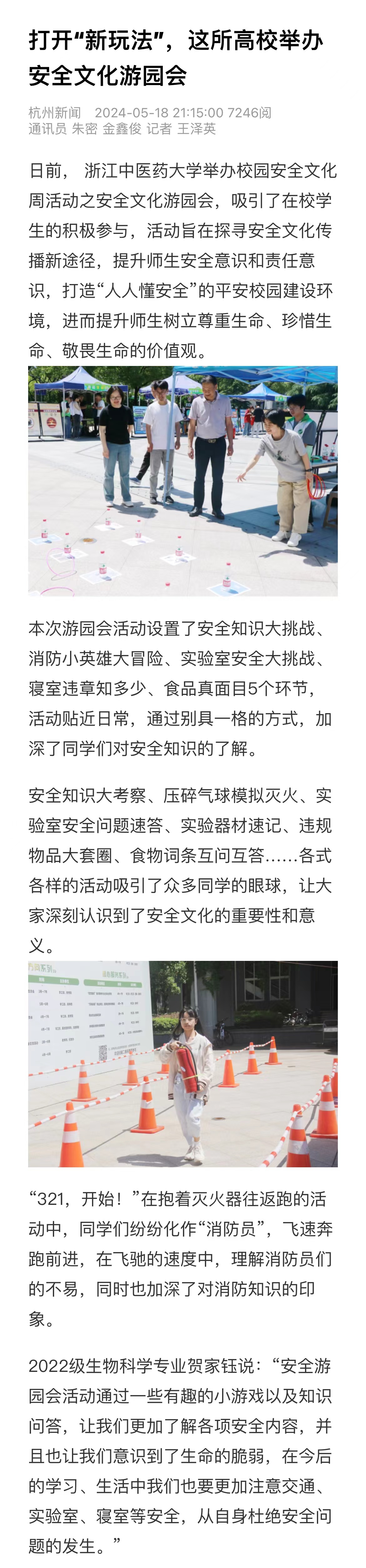 杭州新闻:打开“新玩法”,这所高校举办安全文化游园会